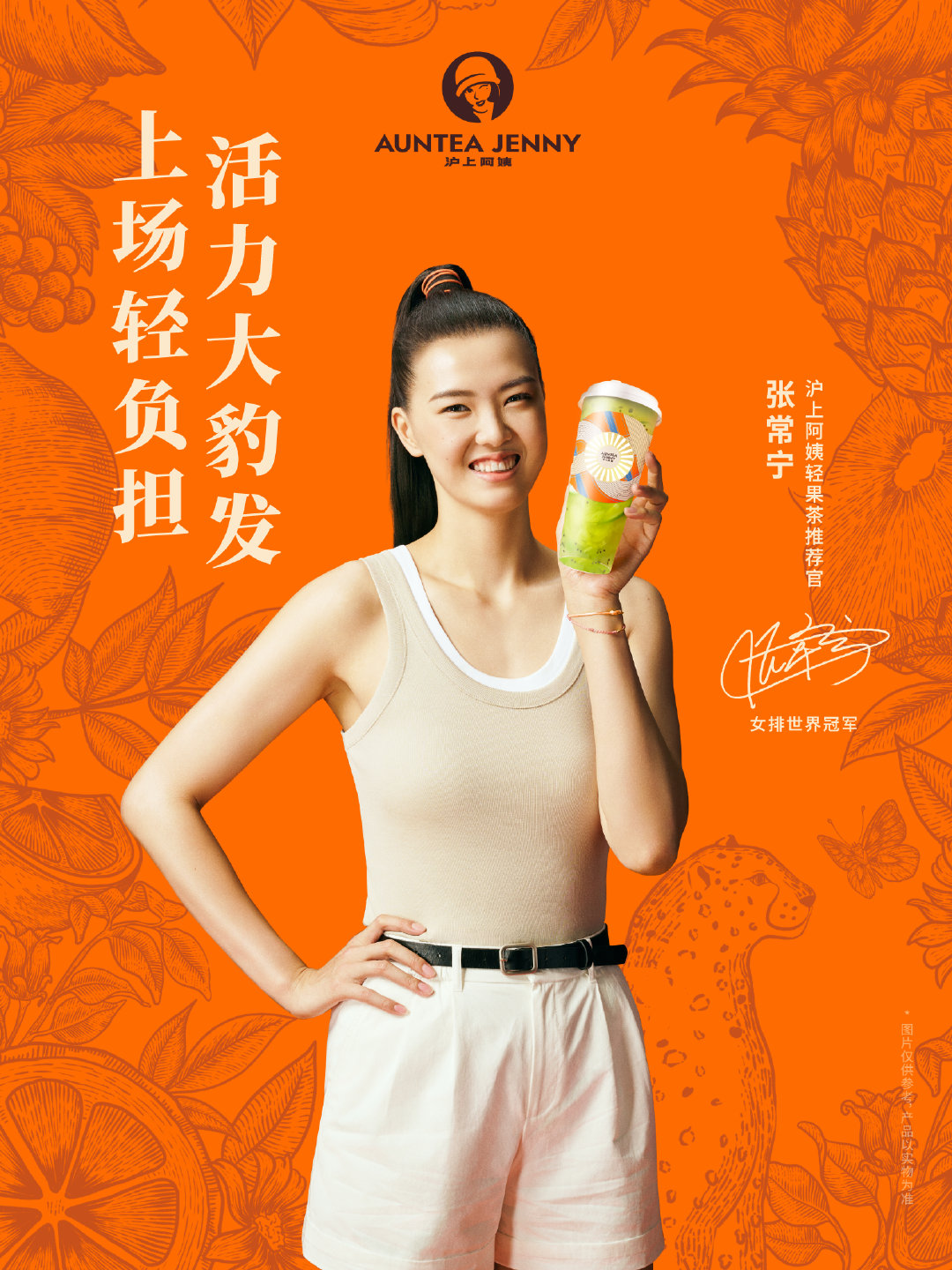 奧運之際,滬上阿姨官宣女排運動員張常寧成為輕果茶推薦官,讓世界看見中國姑娘,也看見摩登東方茶。滬上阿姨也為這次官宣帶來了充滿奧運氛圍的周邊,有倒入飲品,即可解鎖變色的巴黎跑道大桶,以及多巴胺色無繩跳繩邀請大家能夠一起輕盈起跳。