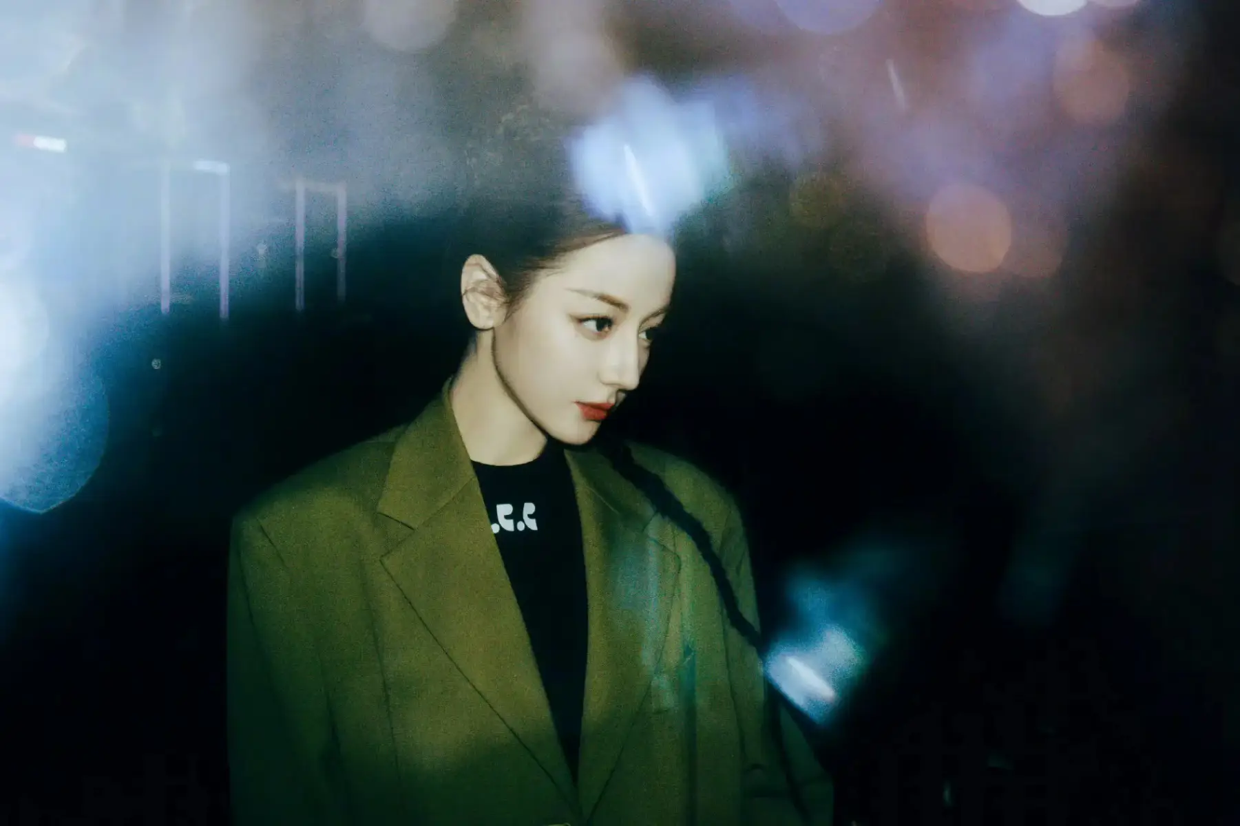 迪麗熱巴穿綠西裝又美又颯 側顏完美氣質高級