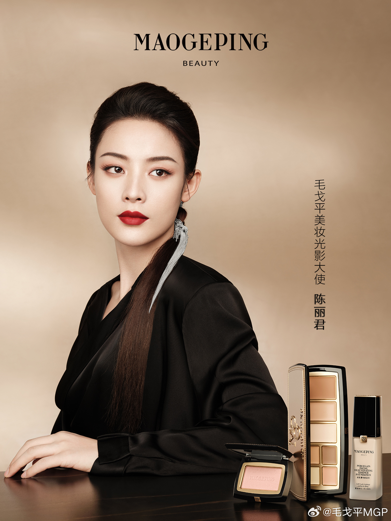 6 月 12 日,毛戈平正是官宣陳麗君(明星代言公司)為品牌美妝光影大使陳麗君。