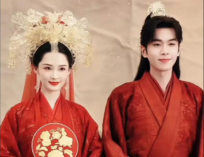 張若昀李沁穿紅色古裝婚服 戴3D打印鳳冠貴氣十足