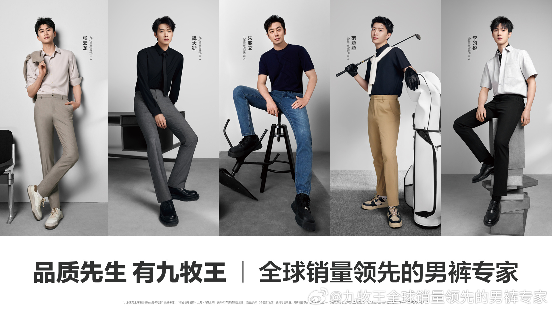 今日,專注男褲領域的服飾品牌九牧王一起官宣了魏大勛、范丞丞、李昀銳、張云龍、朱亞文共五位品牌代言人,并攜手帶來全新廣告片,以「品質先生有五條褲子」為靈感,邀五位代言人分別詮釋品牌經典的高...