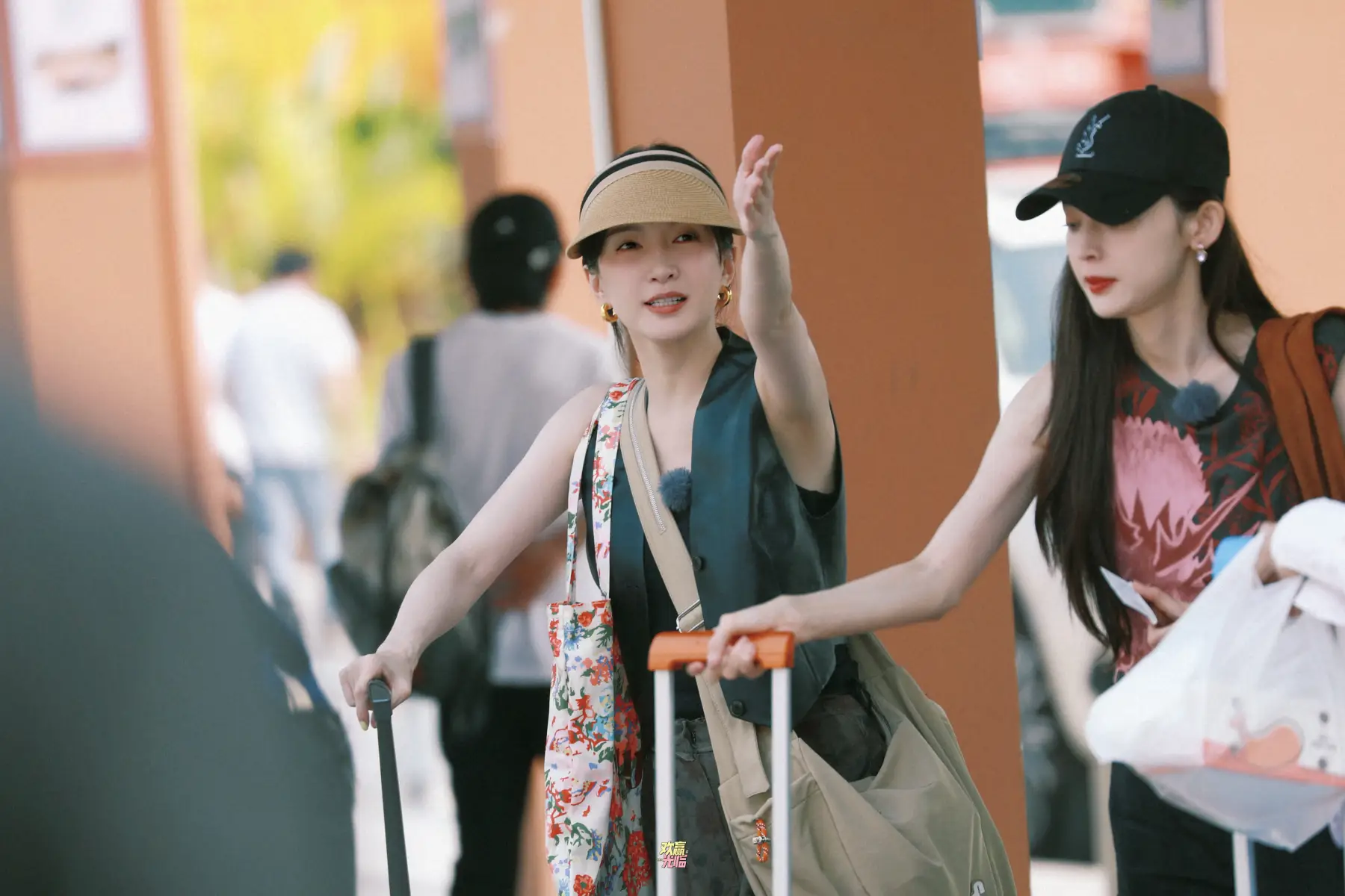 4月12日,網友在西雙版納高鐵站偶遇娜扎、江疏影和楊佑寧,娜扎江疏影衣著清涼生圖美膩。
