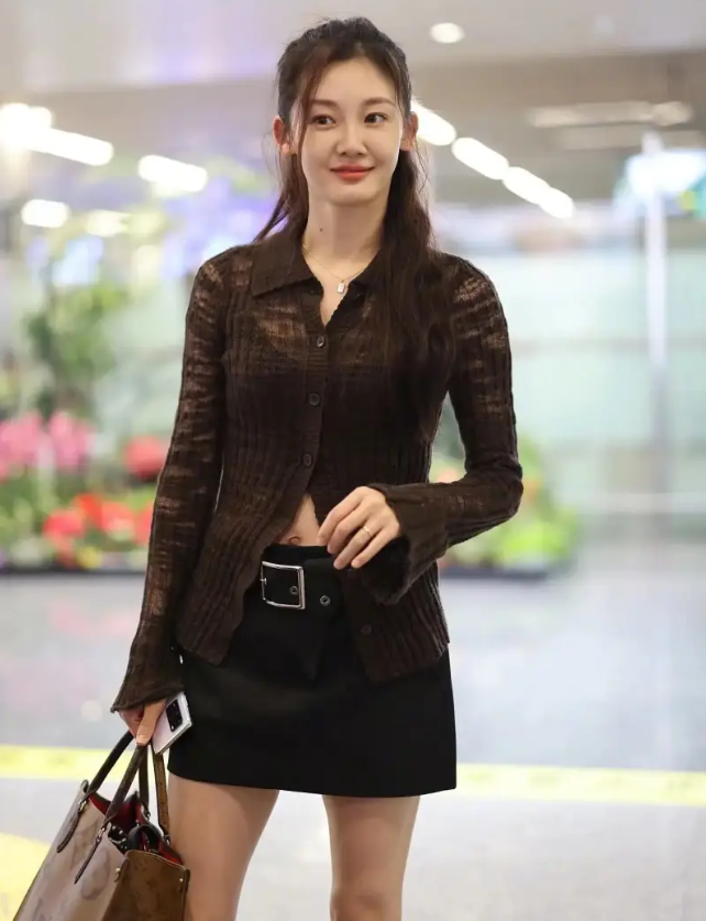 苗苗出發(fā)前往錄制現(xiàn)場(chǎng),穿棕色鏤空透視上衣,時(shí)髦感十足。
