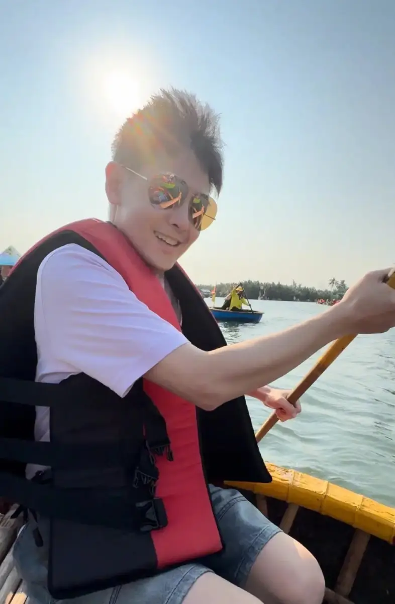 林志穎開心劃船。