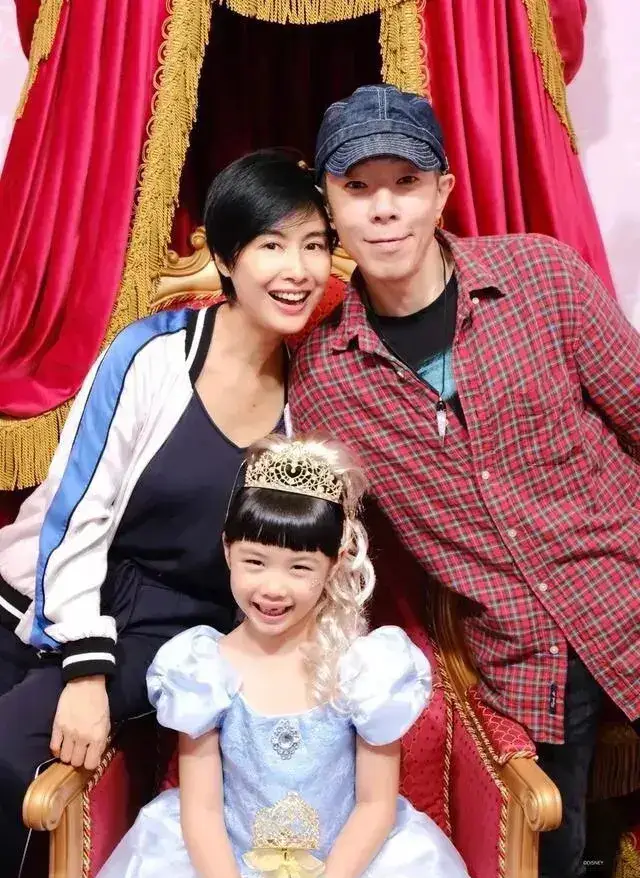 朱茵一家三口同框合影,黃貫中摟著老婆、孩子,畫面溫馨有愛。