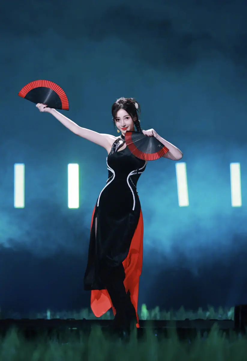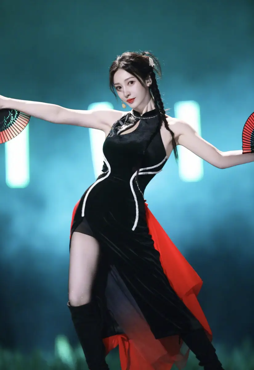 4月19日,柳巖穿旗袍搖扇翩翩起舞,黑紅配色美艷十足,緊身剪裁盡顯完美身材,姿態(tài)輕盈婉轉(zhuǎn),奪目靚麗。