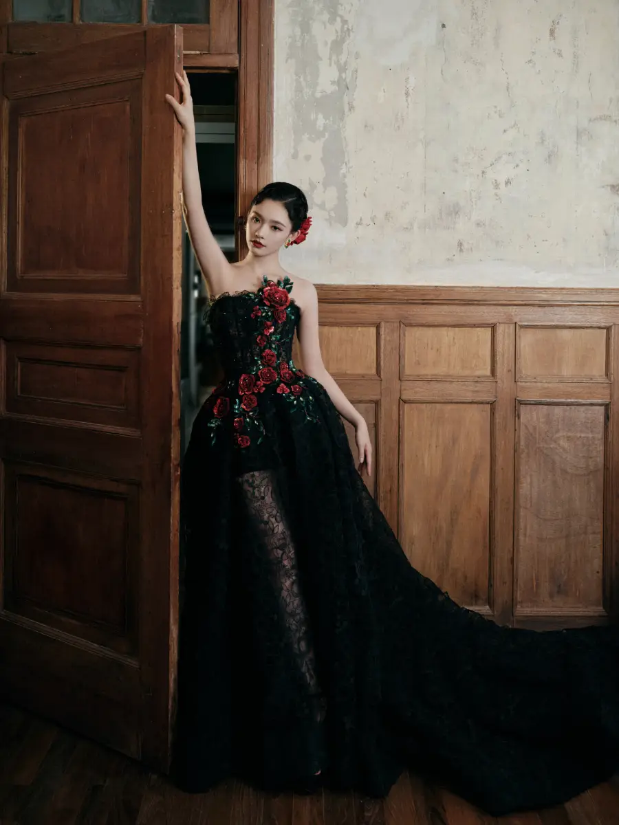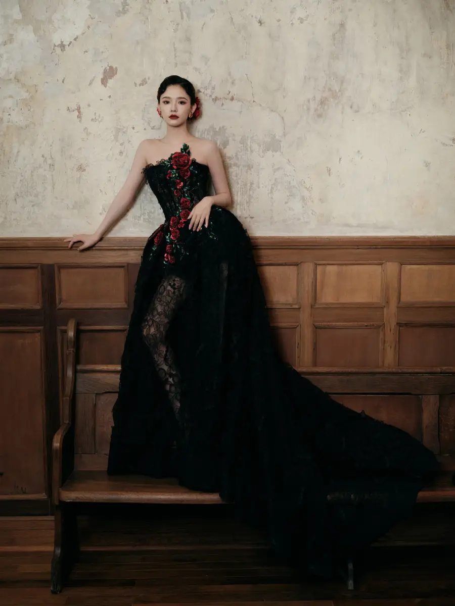 10日,林允參加芭莎盛典的造型寫真曝光,她身穿黑紗玫瑰裙嫵媚迷人,一雙白嫩美腿在裙擺中若隱若現(xiàn),魅力十足!