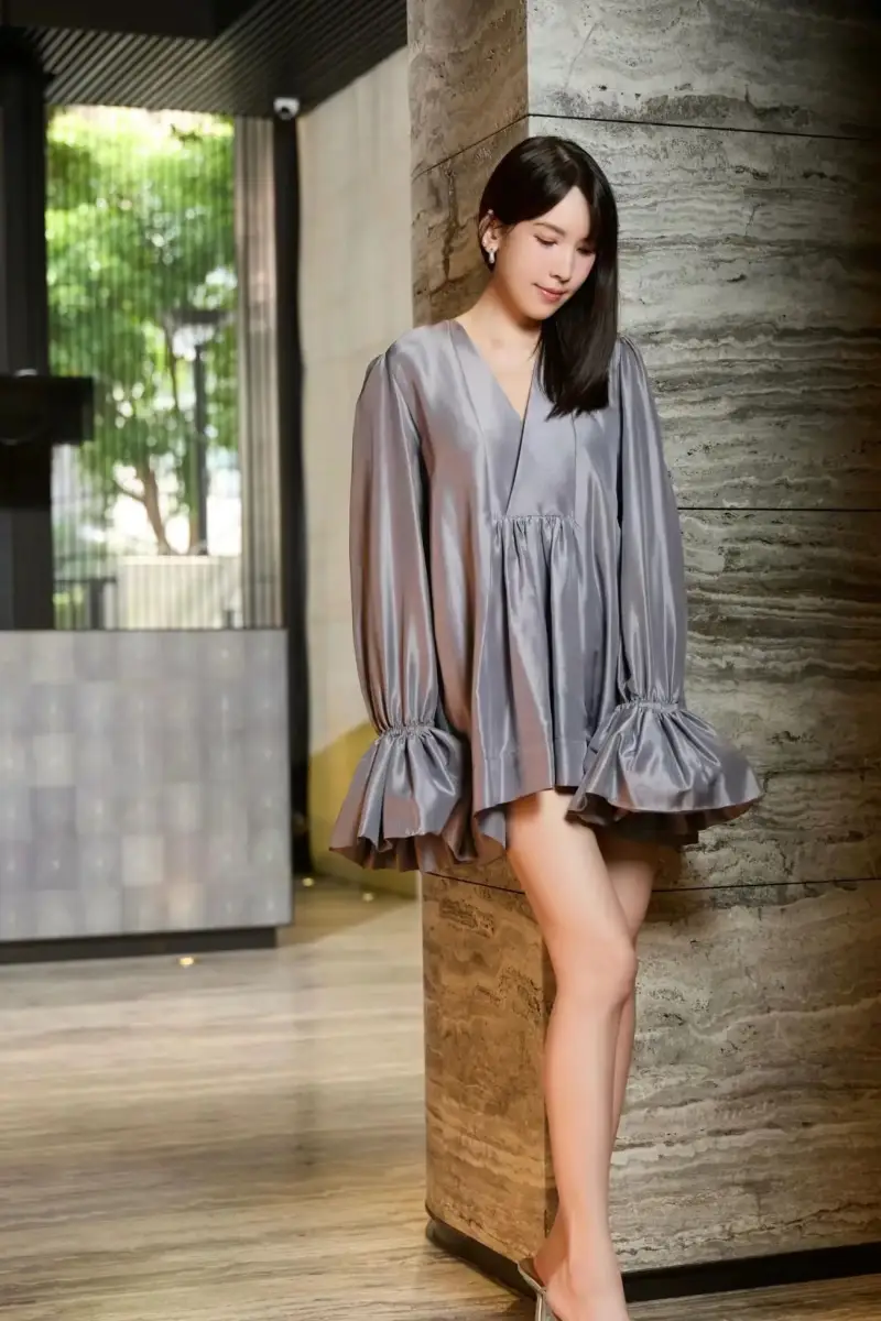 陳若儀皮膚白皙,長(zhǎng)腿迷人。