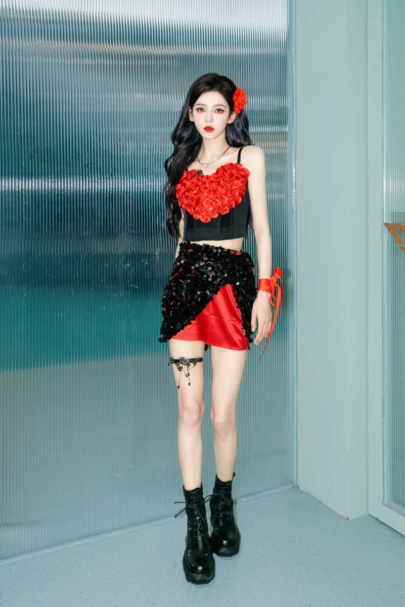 張予曦仿佛盛開的紅玫瑰。美暈了!