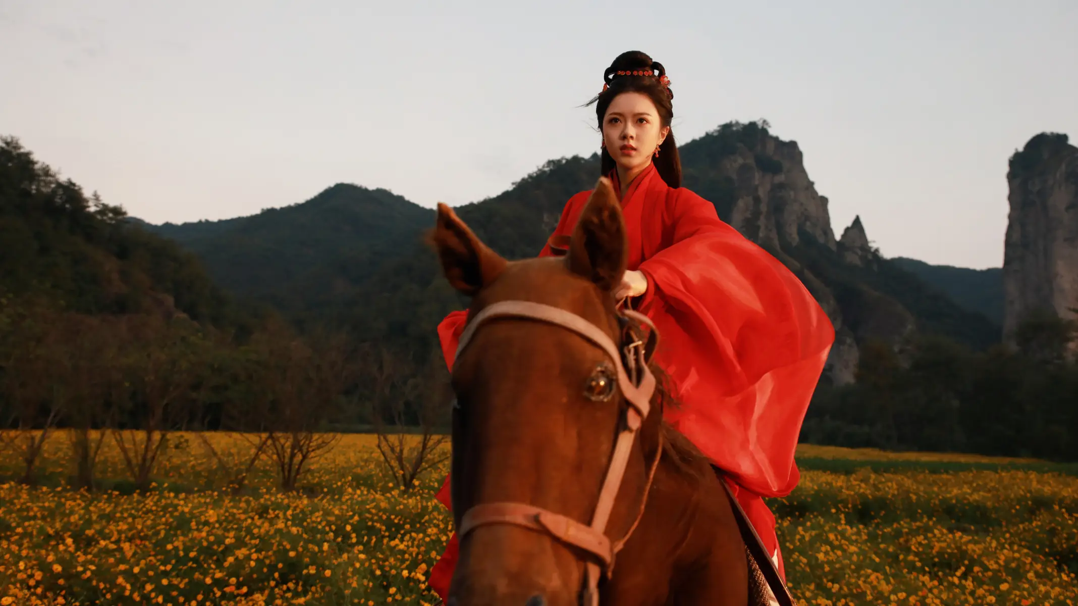 趙今麥一身紅衣古裝騎戰(zhàn)馬 美麗瀟灑盡顯俠客氣質(zhì)