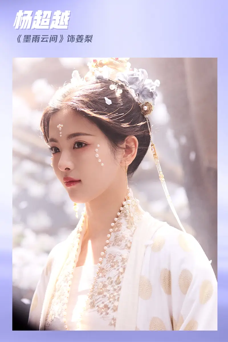 楊超越在《墨雨云間》中飾演姜梨,額間的珍珠花鈿與其他幾人的設計又有所不同,艷而不俗,動輒不亂,非常優(yōu)美。