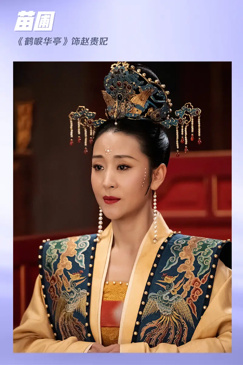 苗圃在《鶴唳華亭》中飾演趙貴妃,這部劇的優(yōu)點就是服化造考究,構(gòu)圖絕美,每一幀都能截成壁紙桌面的程度!