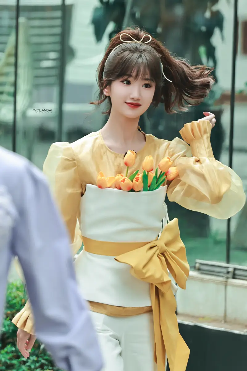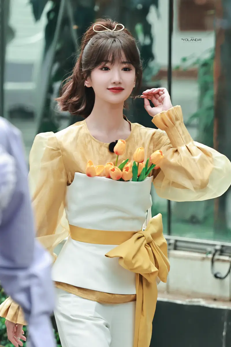 近日,毛曉彤(明星經(jīng)紀(jì)公司)在綜藝中的一組黃色郁金香造型釋出,胸前插滿鮮花甜美動(dòng)人。