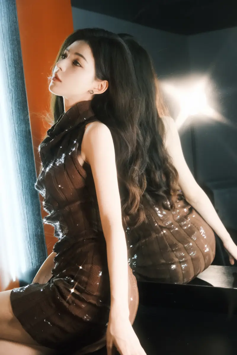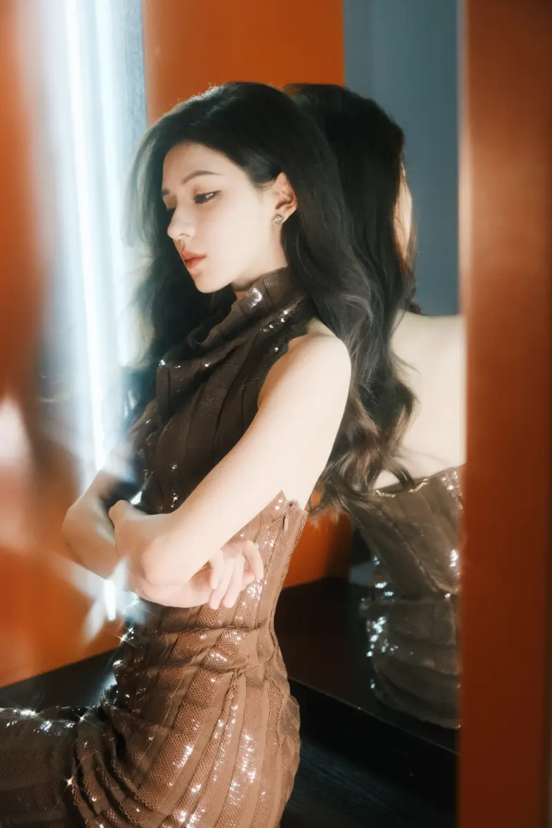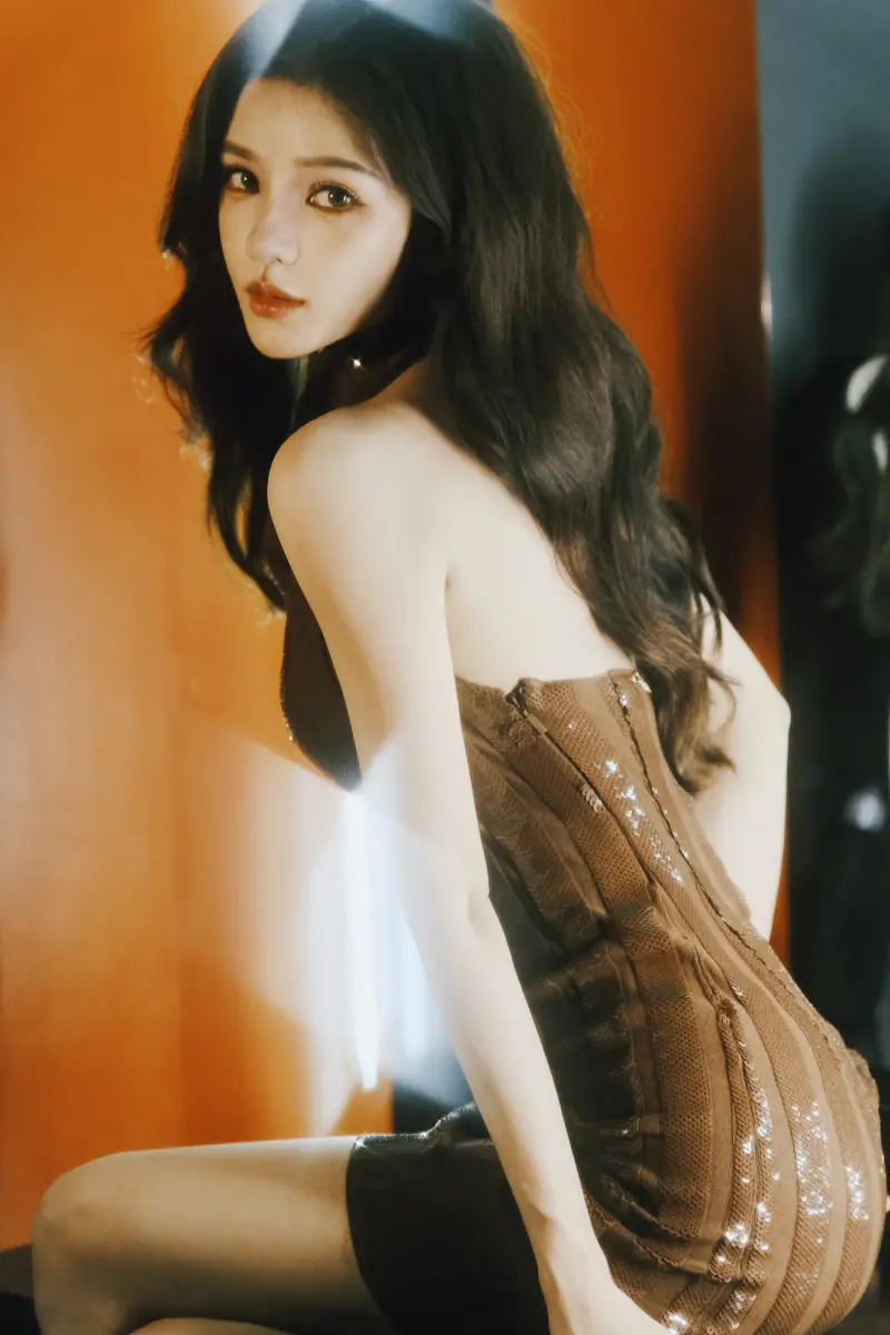 張予曦穿咖啡色緊身裙秀美背,身材窈窕動人!