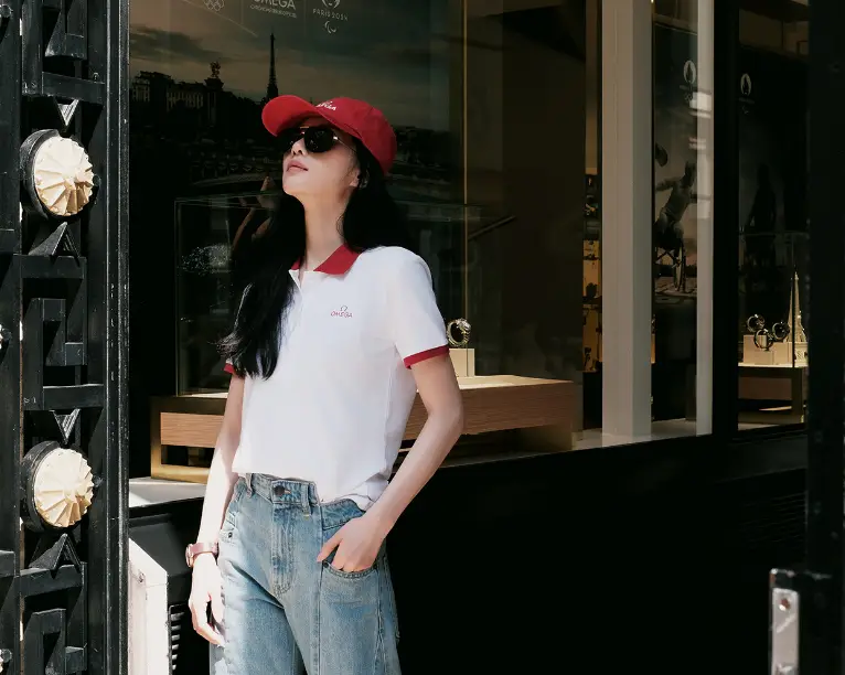 劉詩詩頭戴紅色棒球帽簡約隨性。