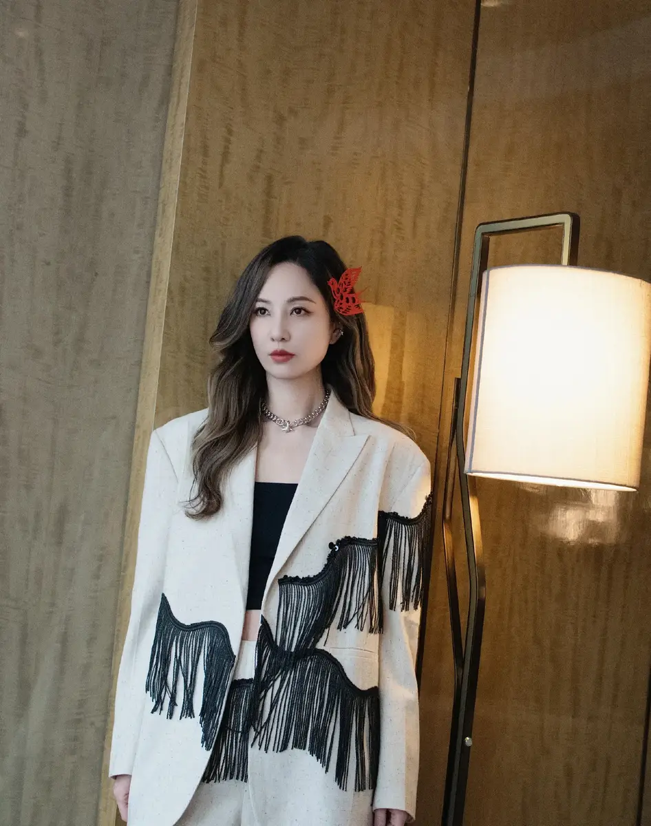 鄭希怡穿搭時髦,很有特點。