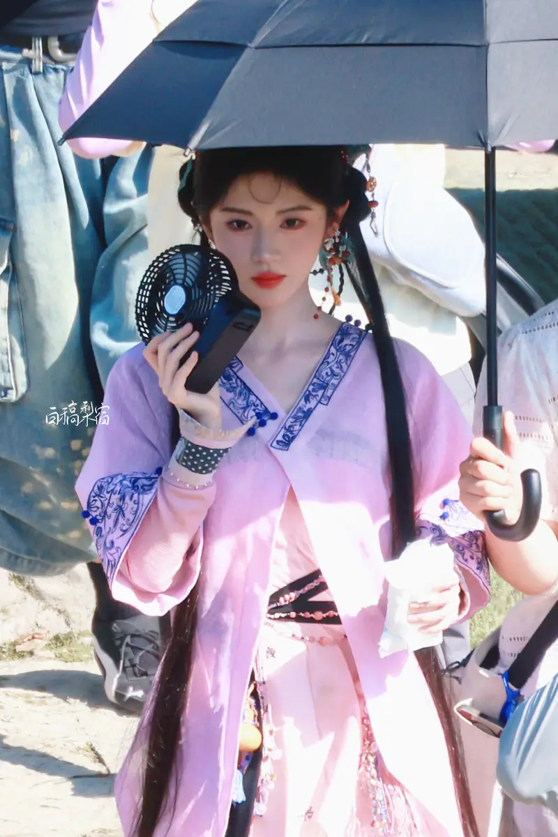 日前,鞠婧祎拍攝《來戰(zhàn)》路透曝光,照片中她穿著粉紫色相間的古裝,衣領(lǐng)設(shè)計(jì)很有新中式的韻味。