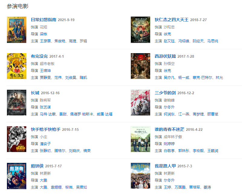 代表作品:狄仁杰之神都龍王、痞子英雄之黎明升起、智取威虎山、三少爺?shù)膭?、楚喬傳、武神趙子龍、步步驚心、同桌的你