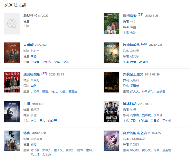代表作品:破冰行動(dòng)、北京遇上西雅圖