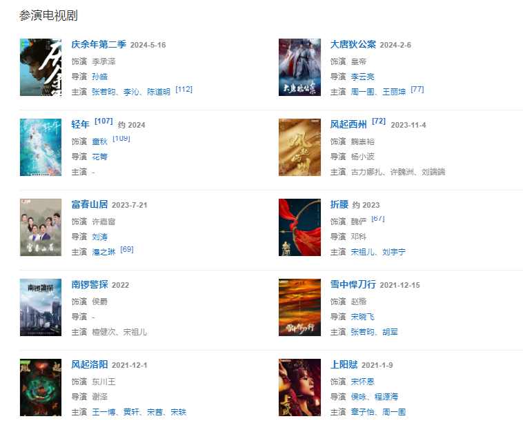 2024年4月19日,參演的文獻(xiàn)話劇《抗戰(zhàn)中的文藝》上映。5月16日,參演的電視劇《慶余年第二季》播出。