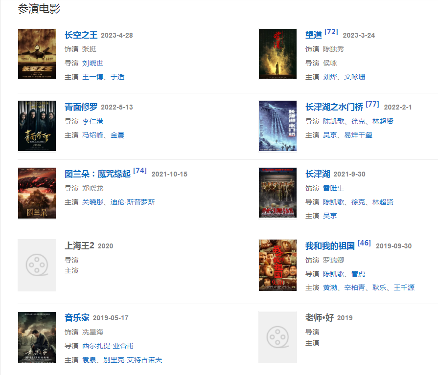 2021年,與吳京、易烊千璽等合作主演抗美援朝電影《長(zhǎng)津湖》上映。