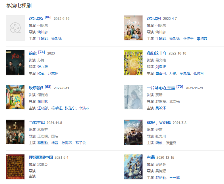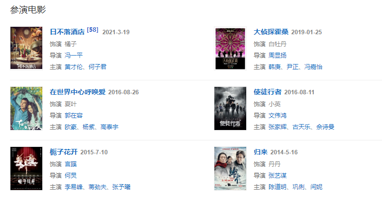 代表作品:歸來、梔子花開、使徒行者、瑯琊榜之風(fēng)起長林、大偵探霍桑