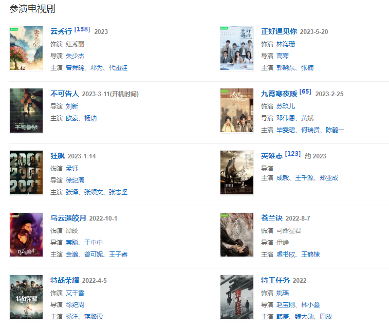 代表作品:射雕英雄傳、鶴唳華亭、媚者無(wú)疆、了不起的女孩、我的時(shí)代,你的時(shí)代、我在時(shí)間盡頭等你