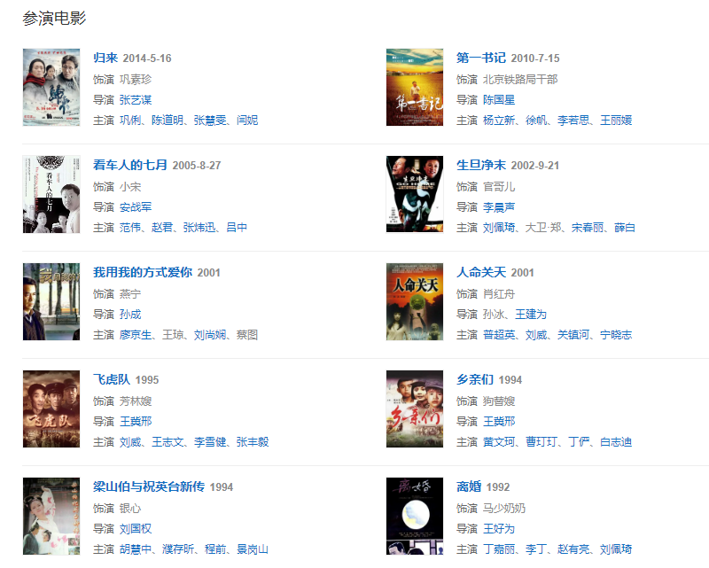 代表作品:外來妹、半路夫妻、婚姻的敵人、大工匠、婚變、復(fù)婚、葉落長(zhǎng)安、咱家那些事、女刑警李春春、天倫