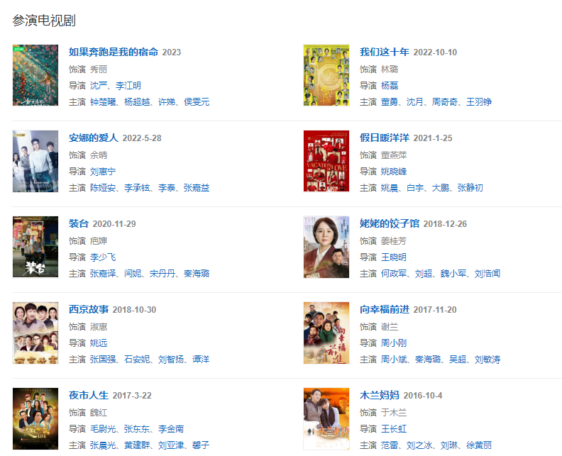 2016年參演電視劇《女不強(qiáng)大天不容》。同年主演電視劇《木蘭媽媽》。