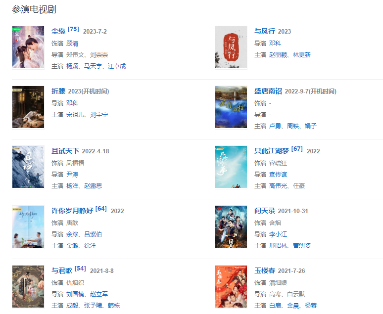 代表作品紅樓夢(mèng)、舞樂傳奇、花謝花飛花滿天、靈魂擺渡、陳情令