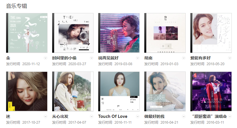 代表作品:一萬個(gè)舍不得、再見只是陌生人、我也許在等候、好可惜、以后的以后、不要在我的傷口撒鹽、走著走著就散了、一直想著他、愛囚、為情所傷、放過自己、再遇不到你這樣的人、與我無關(guān)、耳聽愛情