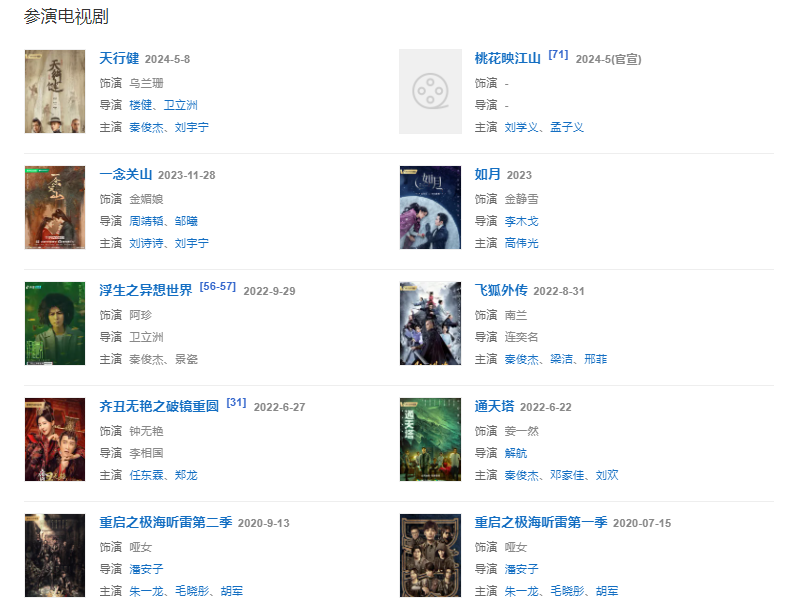 2024年1月26日,領(lǐng)銜主演的喜劇電影《冒牌特工》上映;4月3日,主演的犯罪懸疑片《黃雀在后!》上映,飾演歌廳小姐關(guān)秀英。5月8日,與秦俊杰、劉宇寧合作主演晚清末年題材劇《天行健》播出,在劇中飾演留洋歸來的晚清格格烏蘭珊。
