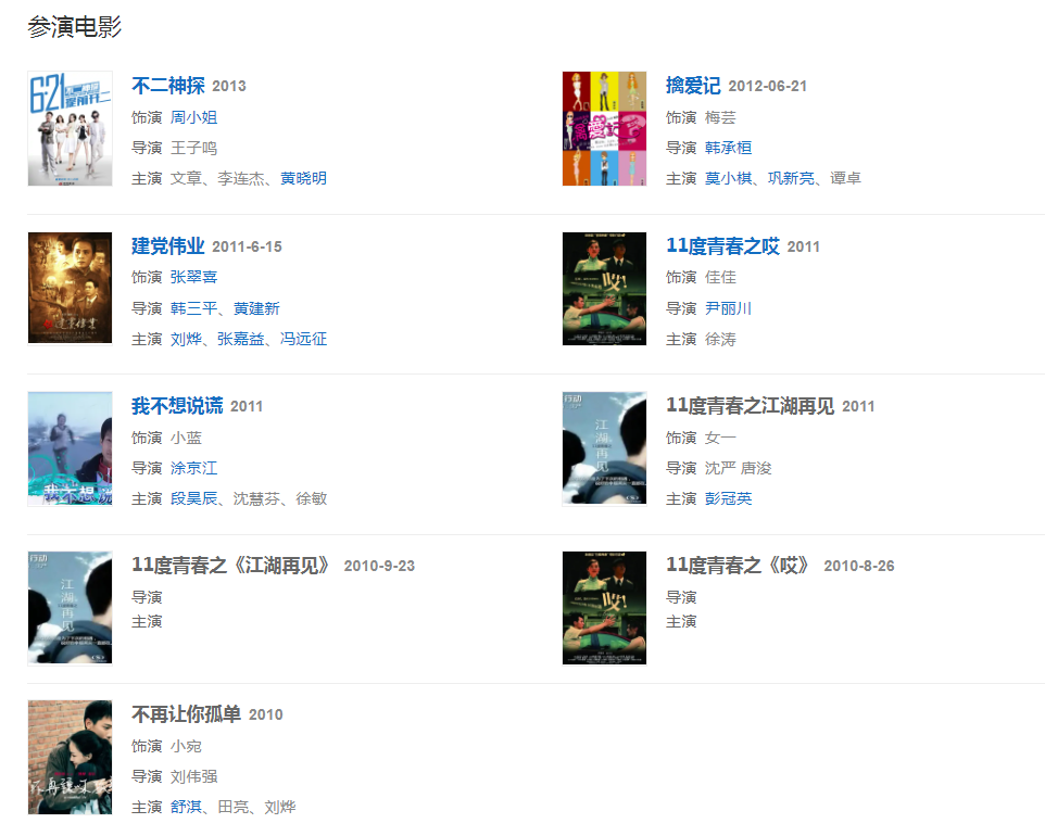 2010年出演網(wǎng)絡劇《11度青春》系列走紅 。