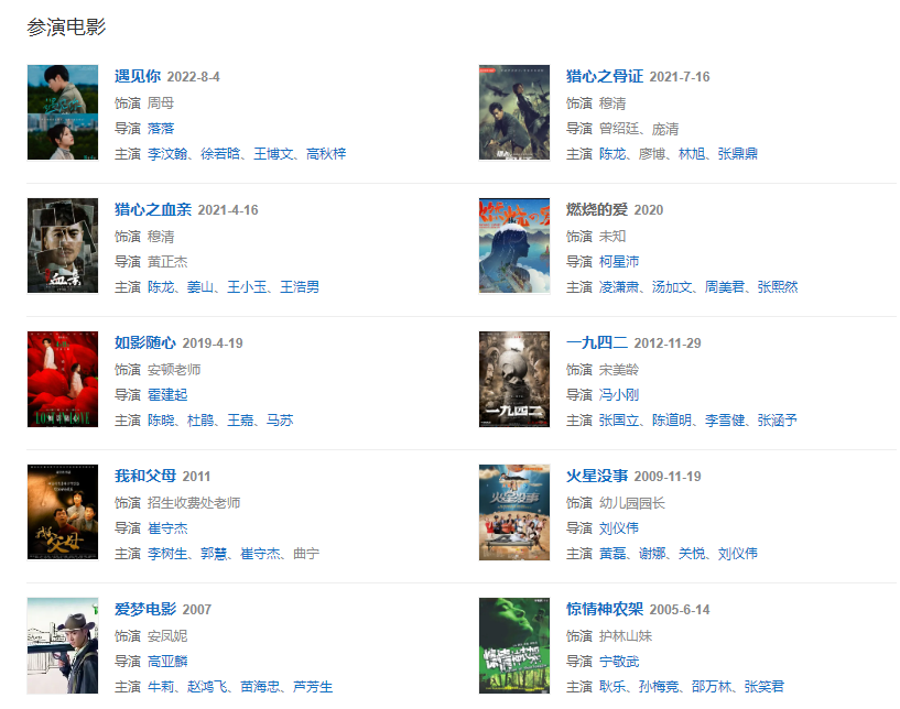 2014年12月在潘軍執(zhí)導(dǎo)的諜戰(zhàn)劇《虎口拔牙》出演阿金一角。