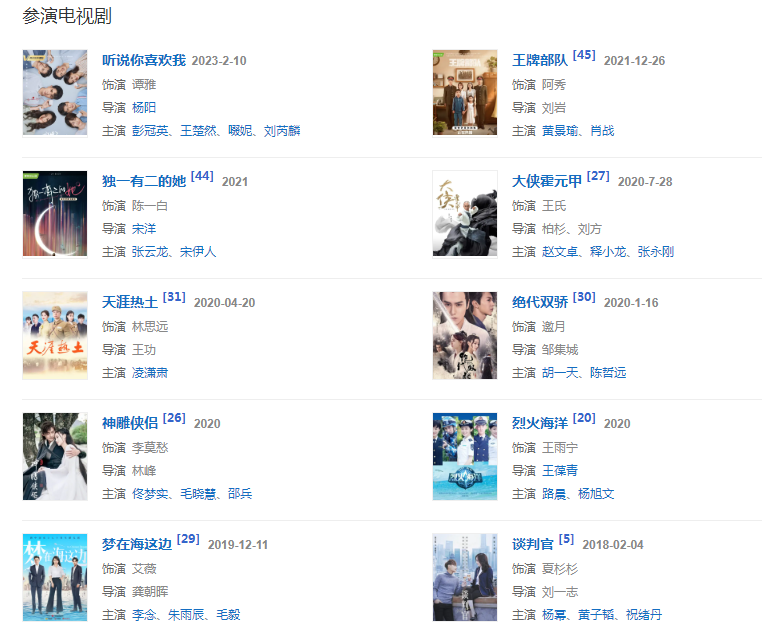 2020年,主演武俠劇《絕代雙驕》;同年參演的海南農(nóng)墾題材劇《天涯熱土》 在央視一套首播。另外與黃景瑜、肖戰(zhàn)共同主演了《英雄歲月之王牌部隊》。
