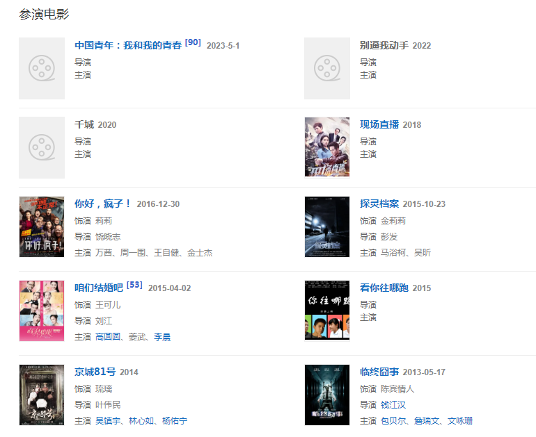 2022年,主演劇情電影《中國青年:我和我的青春》。
