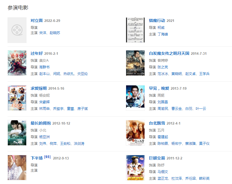 代表作品:大江大河、如懿傳、定制幸福、民兵葛二蛋、新閨蜜時代、三十而已