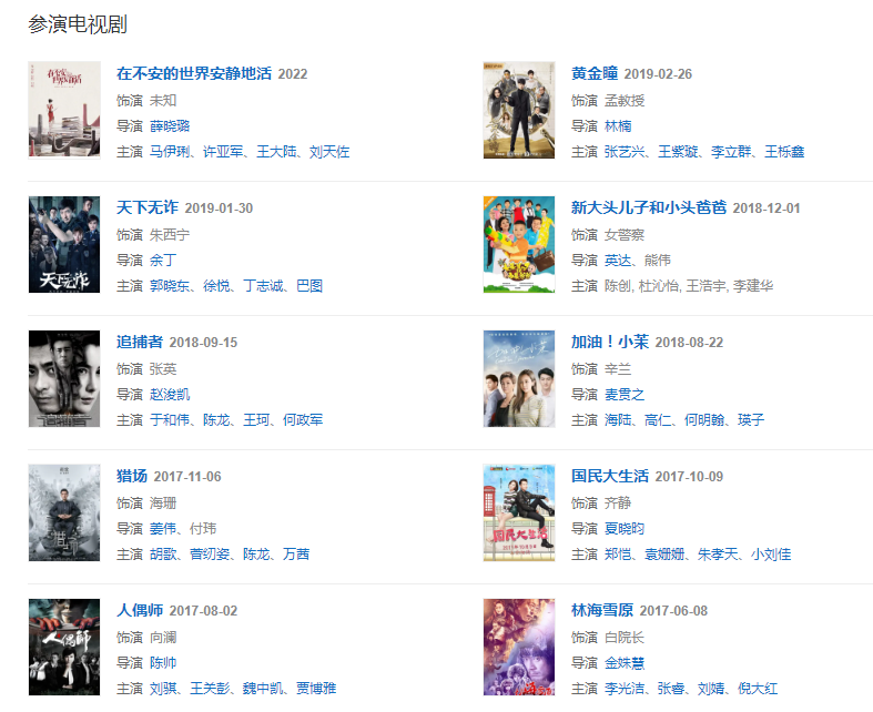 代表作品:急診室故事、紙圣傳奇、特區(qū)打工妹、重案六組、緝毒英雄、加油!小茉