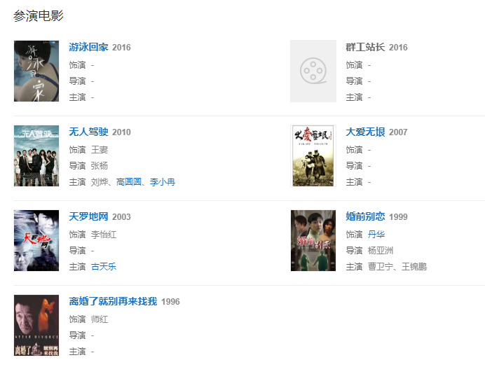 代表作品:笑看風云、粉紅女郎、離婚了就別來找我、爸爸父親爹、父母愛情等