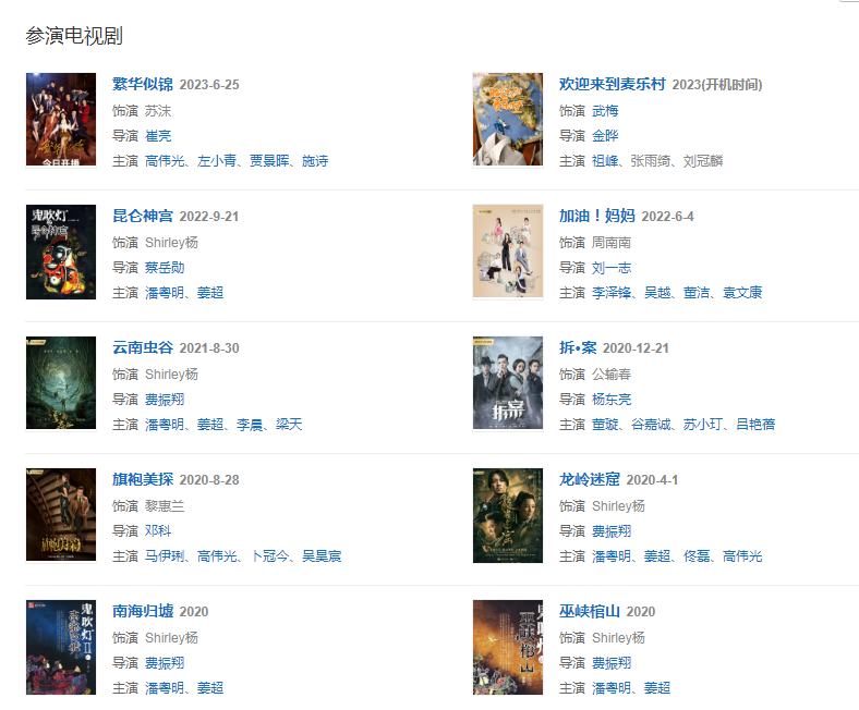 代表作品:妖貓傳、美人魚、白鹿原、錢學(xué)森、長(zhǎng)江7號(hào)、龍嶺迷窟、云南蟲谷