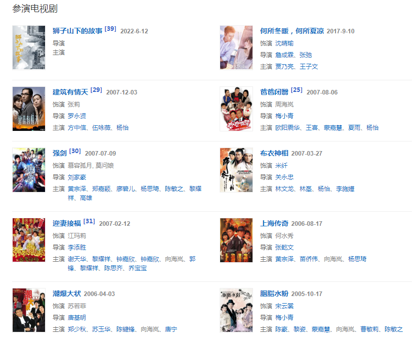 2000年,參演莊偉建執(zhí)導(dǎo)的電視劇《楊貴妃》,飾演楊玉環(huán)。