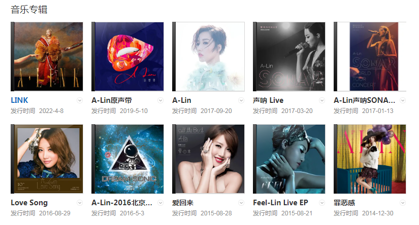2017年,發(fā)行個人同名音樂專輯《A-Lin》。