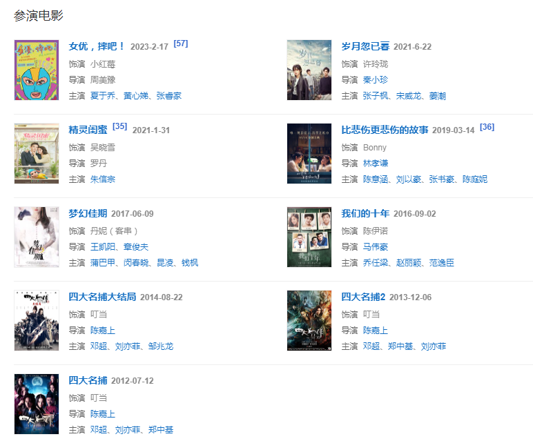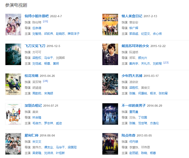 2015年3月17日,參演的古裝劇《少年四大名捕》在湖南衛(wèi)視播出 ;同年主演民國愛情劇《戴流蘇耳環(huán)的少女》 。