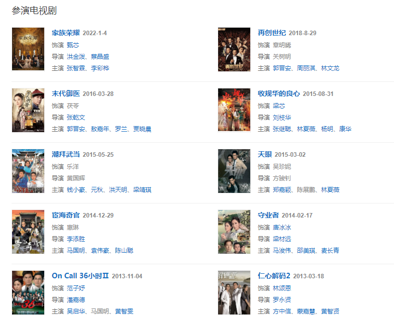 代表作品:智勇新警界、宮心計(jì)、溏心風(fēng)暴之家好月圓、On Call 36小時(shí)、名媛望族