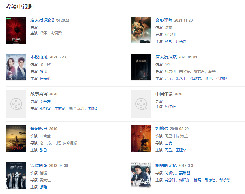 2020年,主演的網(wǎng)劇《唐人街探案》播出 。
