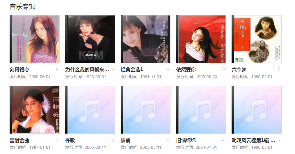 1991年1月,出版國語專輯《望夫崖》(中視八點瓊瑤連續(xù)劇《望夫崖》主題曲),至此由高勝美演唱瓊瑤制作之七部電視劇歌曲十余首皆引起關(guān)注,重創(chuàng)歌唱事業(yè)新高峰。另收錄《還我柔情》(臺視八點連續(xù)劇《還我柔情》主題曲)和《說一聲再見》(華視八點連續(xù)劇”江湖兒女情”片尾聲曲)。3月出版《經(jīng)典金選》,并以《哭砂》一曲入圍第四屆臺灣金曲獎最佳國語女演唱人競選,最后以一票之差打敗被譽為“臺灣流行音樂中第一流”的女歌手許景淳。