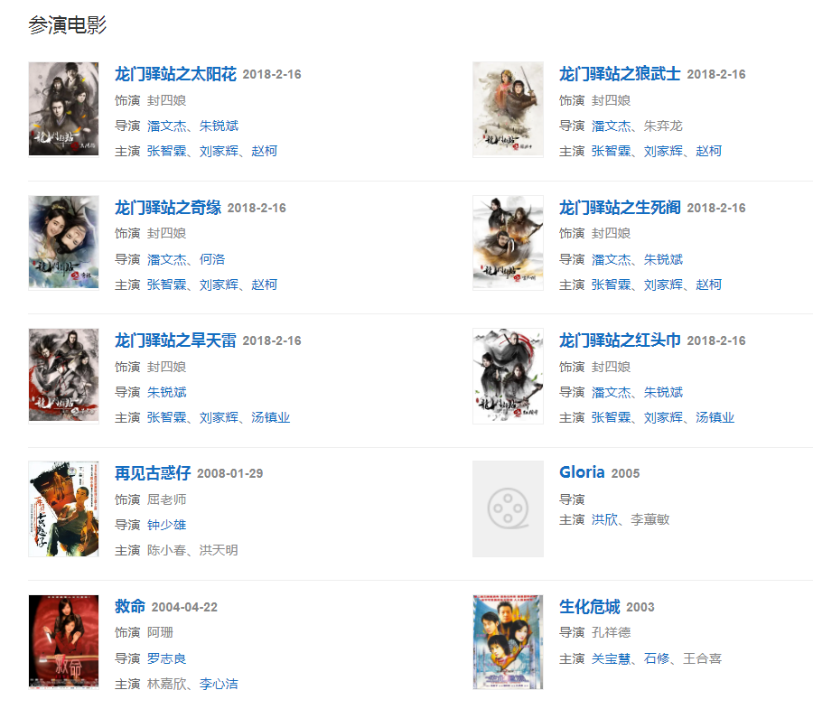 代表作品:錦繡良緣、愛在屋檐下、談判專家、天子尋龍、仁者黃飛鴻、足秤老婆八兩夫、謎情家族
