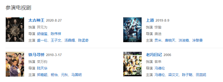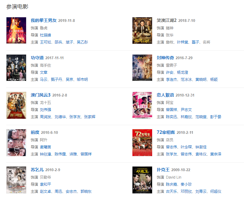 代表作品:最美的時(shí)光、我家小兩口、澳門風(fēng)云3、奪帥、戀人絮語、前度