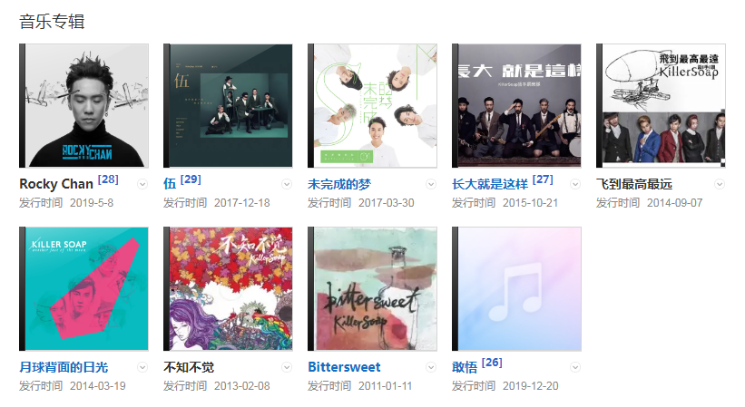 代表作品:月半小夜曲、長大就是這樣、不翼而飛、未完成的夢、愛上晨光的禍、The Choice That I've Made