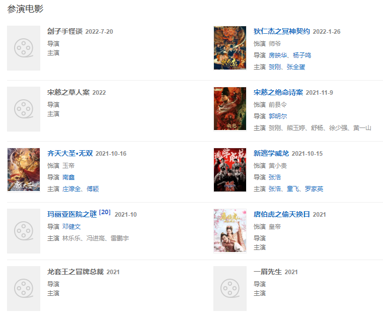 2021年10月16日,參演的網(wǎng)絡(luò)電影《齊天大圣·無(wú)雙》在騰訊視頻全網(wǎng)獨(dú)播; 11月9日,參演電影《宋慈之絕命詩(shī)案》定檔在騰訊視頻獨(dú)家上線播出;參演電影《唐伯虎之偷天換日》。